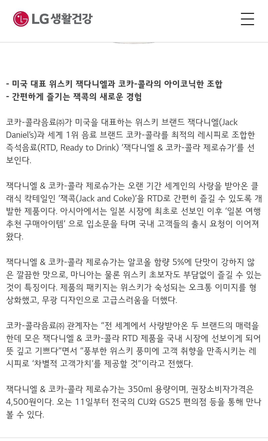 한국 VS 일본 코카콜라 잭다니엘 가격 비교