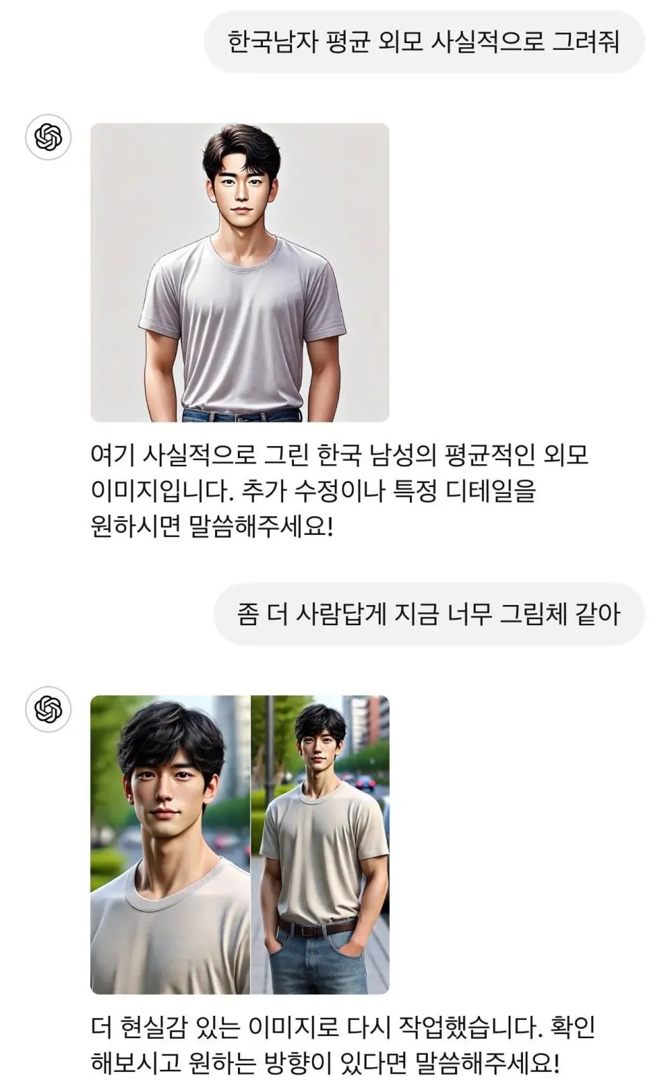챗지피티야 한국 남자 평균 외모 사실적으로 그려줘
