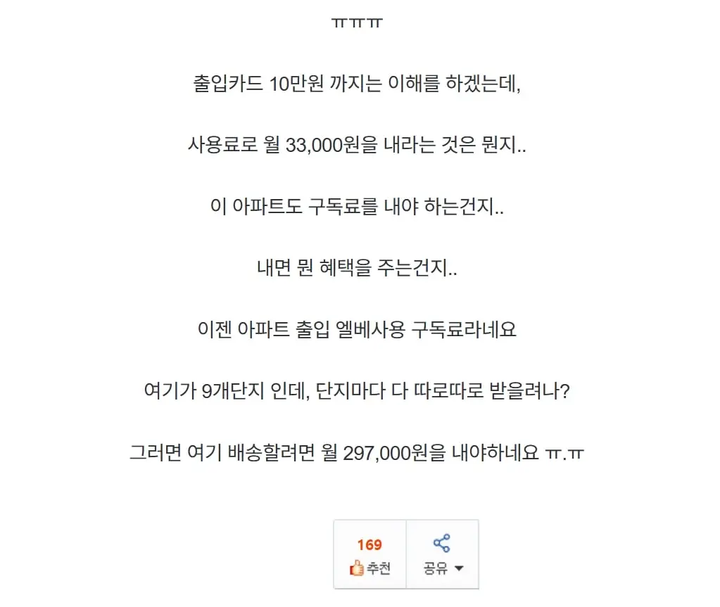 택배기사들 월 구독료 297,000원 내라는 인천의 어느 아파트