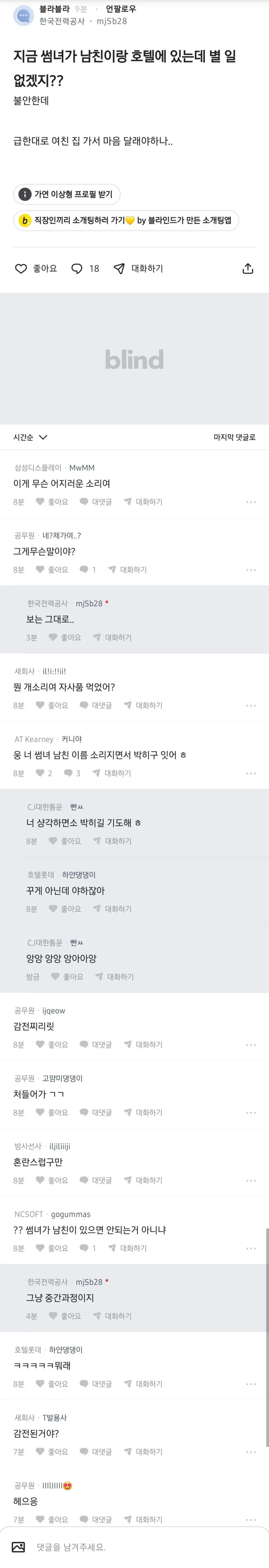 썸녀가 지금 남친이랑 호텔에 있는데 별일 없겠지?