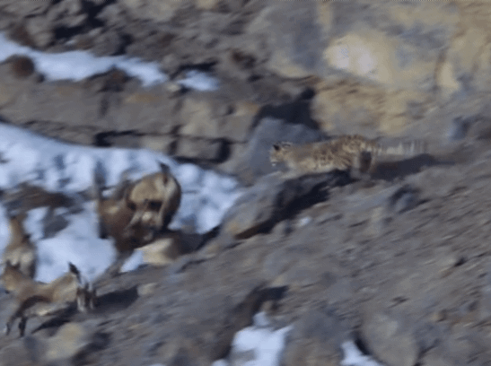 산양 사냥하는 눈표범