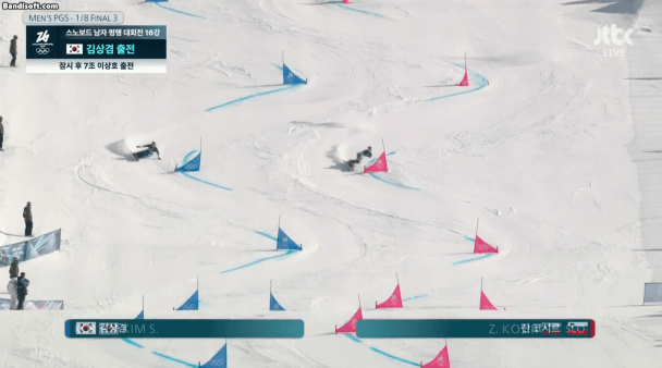 조원희 선수는 토너먼트 올라오지 못했으나 스노보드 맏형 김상겸 선수가 8강에 갔습니다.