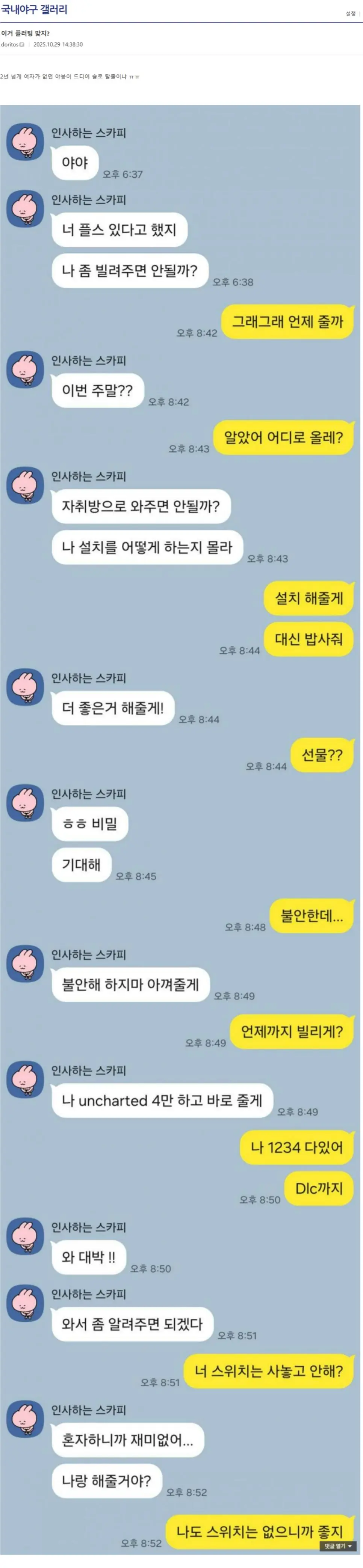 호구주의) 여사친이 플스 빌려달라면서 설치까지 해달라고 함