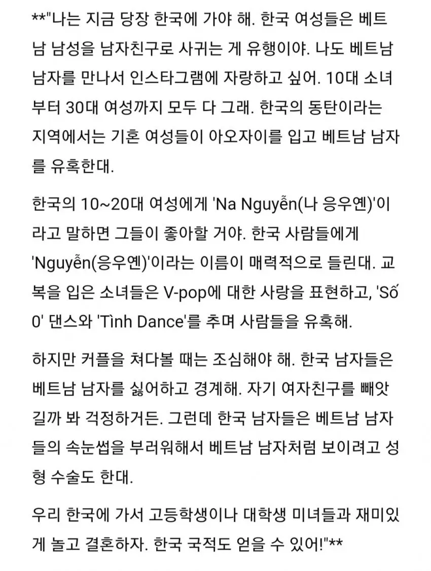 현재 비엣남에 퍼지는 한국 여자랑 야스 하는