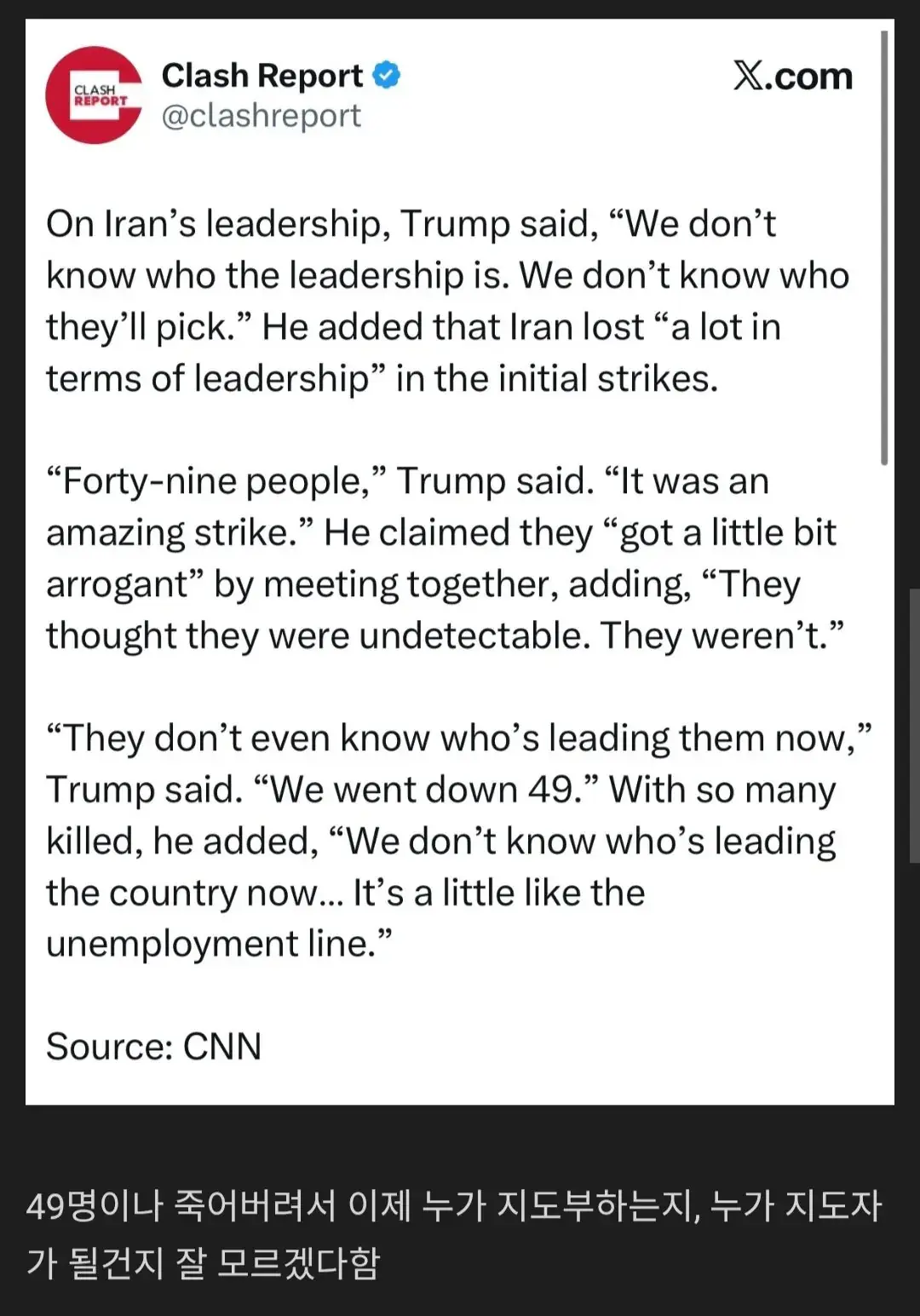 트럼프 : 지금 이란 누가 지도하는지 모르겠다