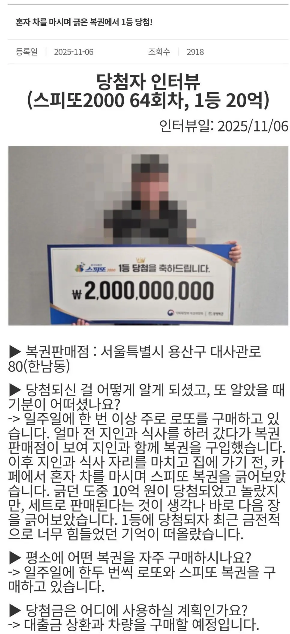 카페에서 혼자 차 마시다가 20억이 생김