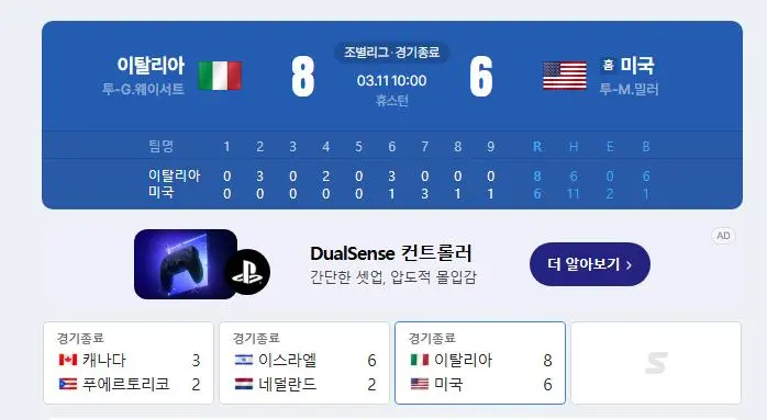 WBC) 야구의 나라 미국, 축구의 나라 이탈리아에 패배