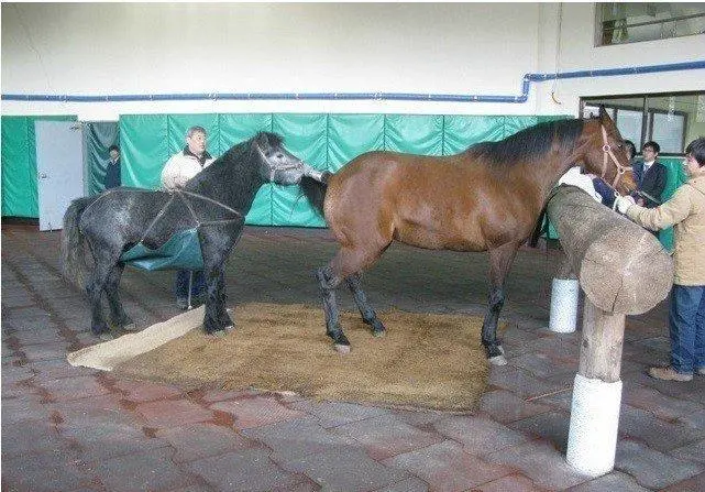 몸값 비싼 씨수말이 교미 작업을 하기 전까지 암말을 애무해 흥분시키는 일을 하는 말이다.