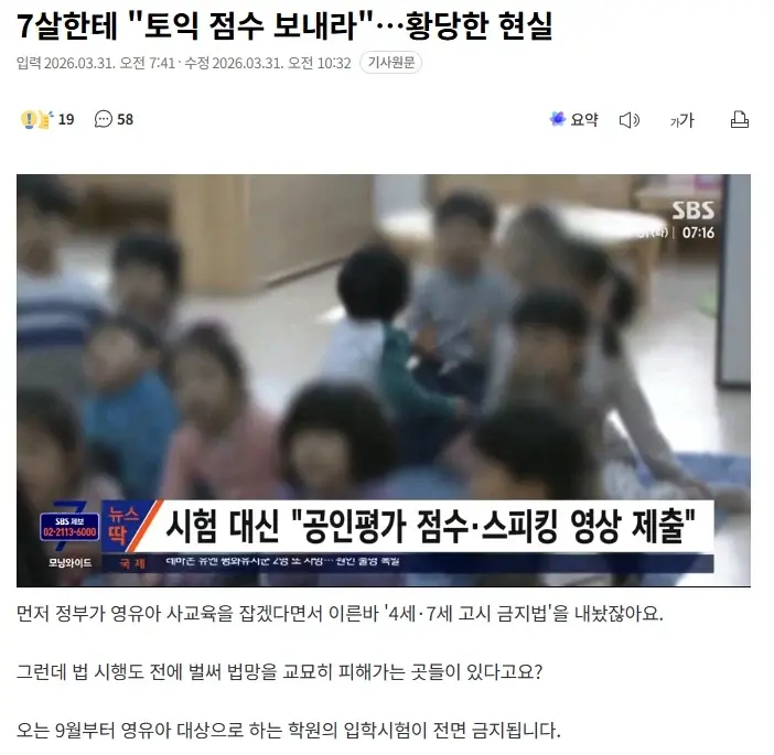영어유치원 입학시험 금지법으로 생겨난 미친 꼼수