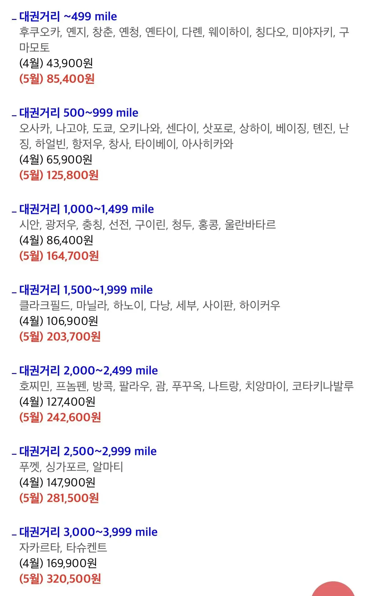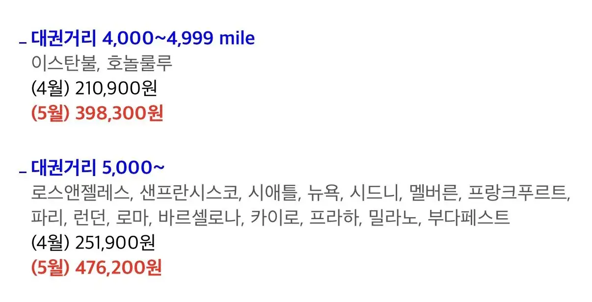 아시아나항공 5월 유류할증료 발표