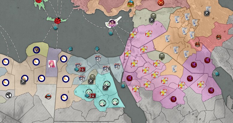 ACE가 아프리카 지역에서 세력을 점점 넓히고 있습니다. GR과 DCARM의 땅 일부씩을 접수했고, SWORD의 테베사 상륙과 DCARM이 MOE에게 영토를 양도하면서 DCARM은 보트를 탔습니다.
