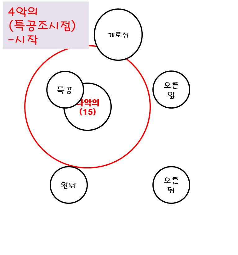 4악의 대상자는 폭격요청이 오기 1초전에 (즉 폭격요청을 캐스팅하는도중에) 특공조에 합류하여 위치합니다.