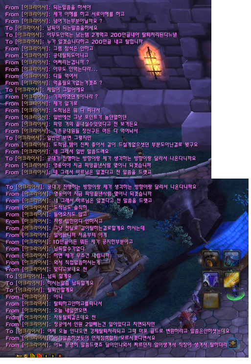 스샷은 귓말 끈낸 직후 부터 맨위로 올리니 중간서부터 밖에 보이질 않아서 해당내용부터 캡쳐했습니다.