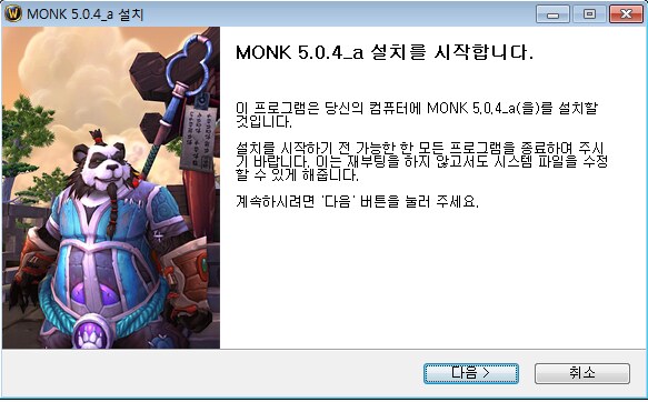 wow_welcome.bmp ; 설치 애드온의 설치 화면의 일부 화면 (개인에 맞게 설정 / 권장 크기 : 200 X 300, 164 X 314)