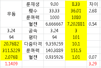 다중타격은 단순 기대값으로 계산했습니다.