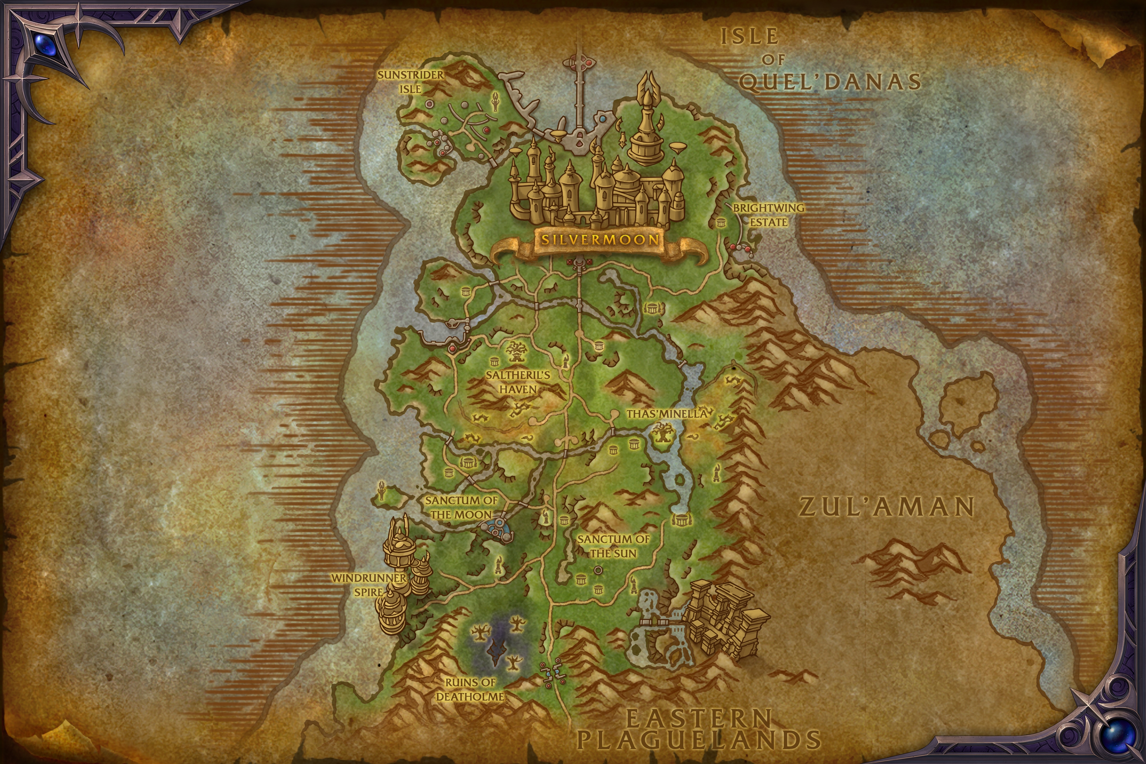 기존의 영원노래 숲과 유령의 땅을 하나로 엮어낸 덕택에 지역은 한층 더 확장되었고, 동부 왕국과도 자연스럽게 이어집니다. 이제 하늘비행으로 반짝이는 블러드 엘프 첨탑과 황금빛 숲의 상공을 가로지르며, 쿠엘탈라스를 완전히 새로운 시각에서 내려다볼 수 있습니다.