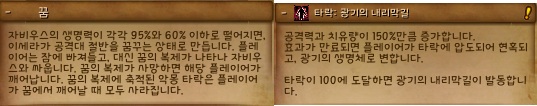요점은 꿈디벞이 있는탱커가 [타락공포]가 쓰는 [고통의 휘둘러치기]를 맞아야합니다.