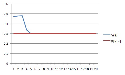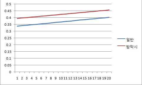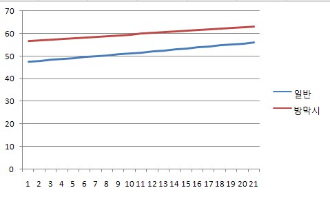 결방의 내부확률만이 증가하게 됩니다. 따라서 그래프는 방막의 효율(30%뎀감에서 60%뎀감으로의)만을 증가시키기 때문에