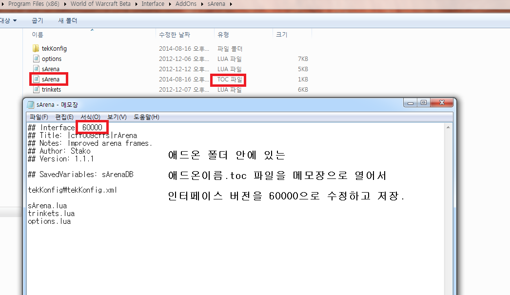 귀찮으신 분들을 위해 미리 수정해놓은 투기장 애드온 및 레이드 애드온 몇개 첨부합니다. (이 글 첨부파일)