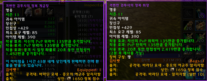 정의점수->명예점수 교환시는 정의점수 2475점에 해당한다