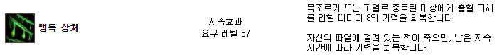 쉽게말해서 8타겟에 맹독이 4마리 발리는거랑 7마리 발리는거랑은 소소해보이지만 딜로봐선 0.6~0.8K 정도 차이가 나곤 합니다.꼭 독살을 섞어써봅시다!!