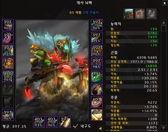 고양술사에게 치명타는 안좋은 옵션이 아니라 좋은 옵션입니다. 다만 민첩과 특화의 EP값이 좋기 때문에 특화가 조명을 받은 것이지요 (특화도는 고양술사의 용채와 더불어 번개화살, 불타는 토템, 불꽃의 무기, 번개 보호막 등의 데미지를 올려줍니다.)