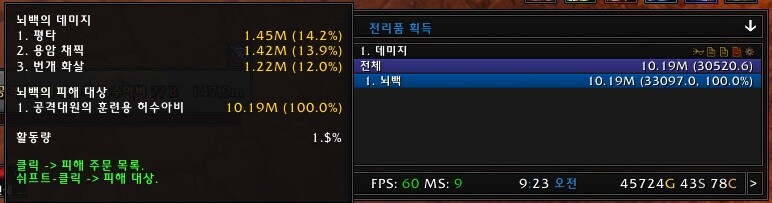 티어 12 2피스 4피스 효과의 부재로 용암채찍의 데미지가 상대적으로 감소했고 그에 비해 평타의 경우 민첩의 증가로 인한 전투력 상승과 더불어 치명타 증가로 평타의 비중은 더 커질수 밖에 없습니다.