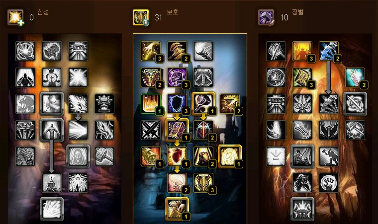 하지만 보호쪽 특성중 많은 분들이 위에서 4번째줄 '징벌' 특성을 찍는분들도 있습니다.