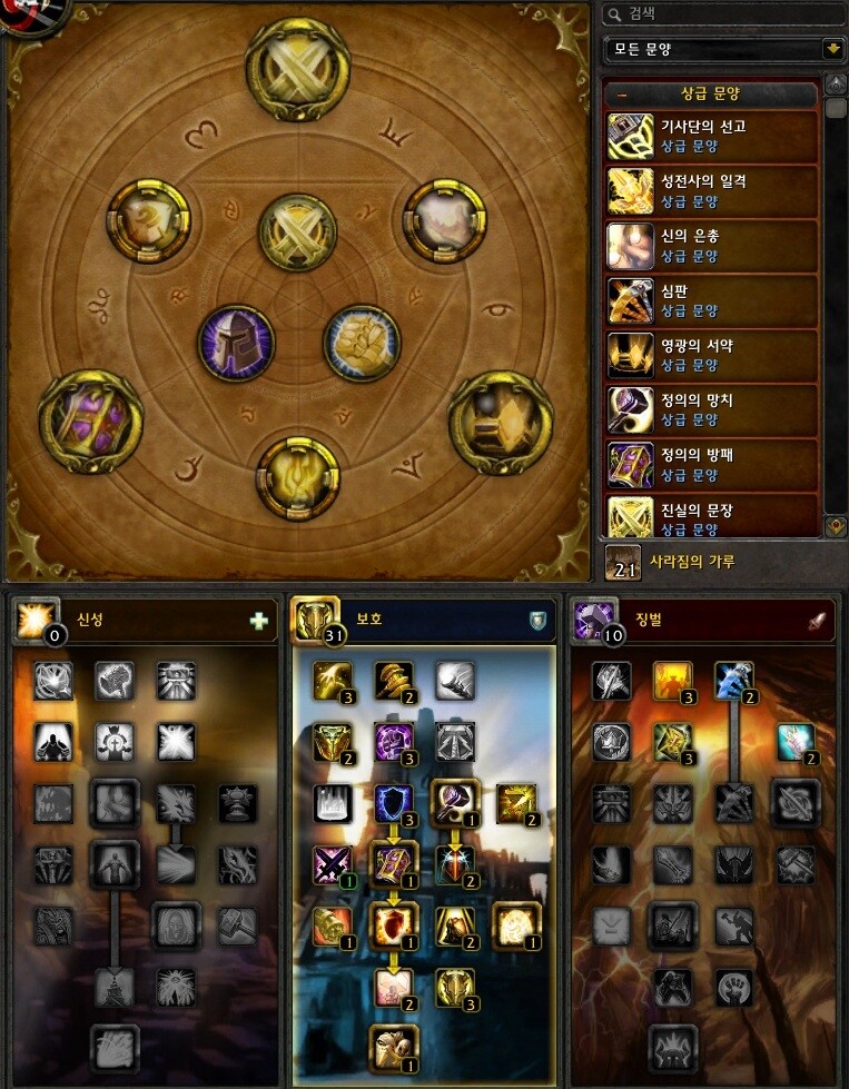 성전사의 일격, 심판, 정의의 망치 와 선택적으로 사용이 가능하지만 초반 어글 수급을 위한 문양으로는