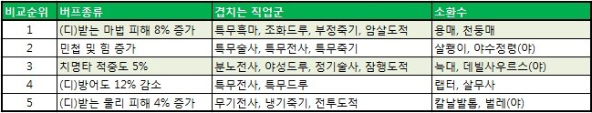 티어13-2셋이후 각특성별 딜싸이클및 가속수치 정리(내마음은판금)
