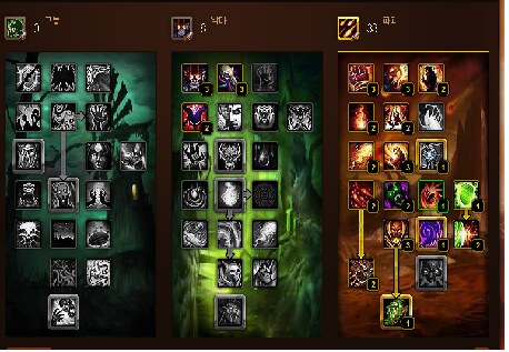 좀더 공격적인 딜을 뽑아 낼 수 있는 트리입니다. 어둠과 불길이 100퍼로 뜬다는점에서 치타확률이 높아짐으로