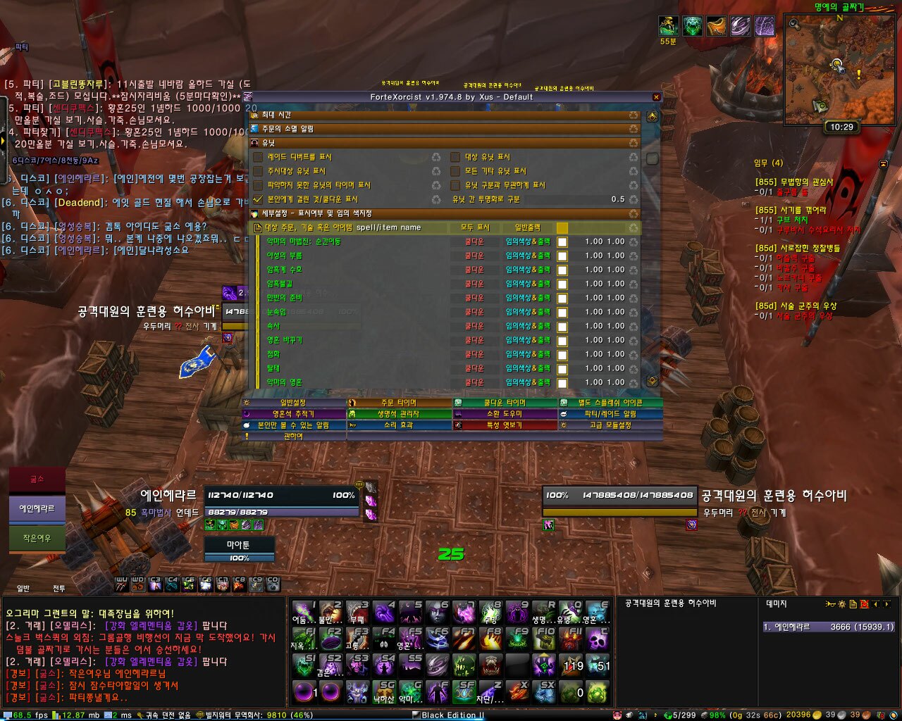 오늘 소개할 에드온 Forte는 흑마특화 에드온으로 도트(다중도트,주시도트 모두지원), 버프, 쿨다운 등을 바(bar)형식으로 나타내줍니다.