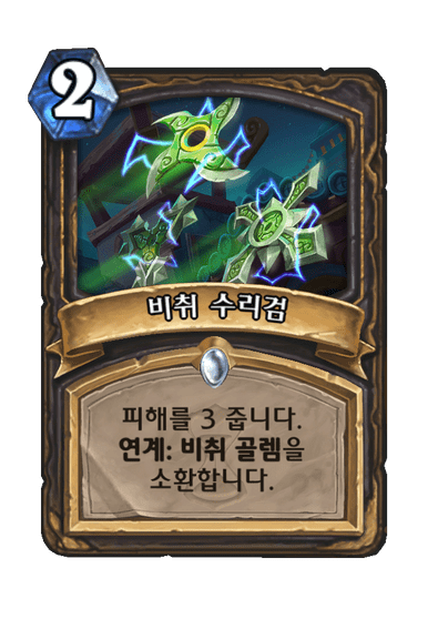 피해를 3 줍니다. 연계:비취 골렘을 소환합니다. 피해를 3 줍니다. 연계:비취 골렘을 소환합니다.