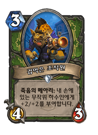 | 효과 | 죽음의 메아리: 내 손에 있는 무작위 하수인에게 +2/+2를 부여합니다. | ||