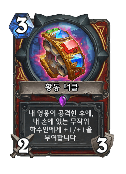 내 영웅이 공격한 후에, 내 손에 있는 무작위 하수인에게 +1/+1을 부여합니다.