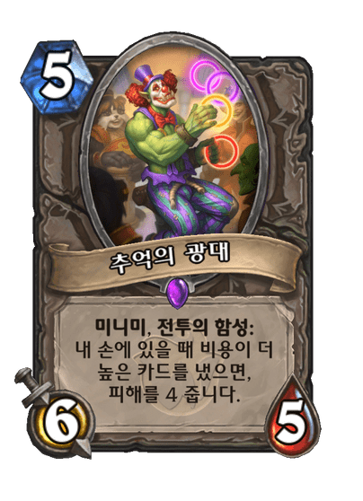 미니미, 전투의 함성: 내 손에 있을 때 비용이 더 높은 카드를 냈으면, 피해를 4 줍니다.