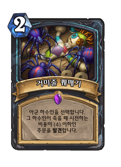 아군 하수인을 선택합니다. 그 하수인이 죽을 때 시전하는 비용이 (4) 이하인 주문을 발견합니다.