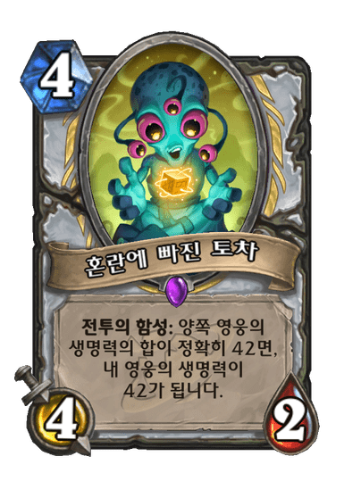 전투의 함성: 양쪽 영웅의 생명력의 합이 정확히 42면, 내 영웅의 생명력이 42가 됩니다.