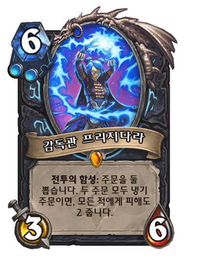 전투의 함성: 주문을 둘 뽑습니다. 두 주문 모두 냉기 주문이면, 모든 적에게 피해도 2 줍니다.