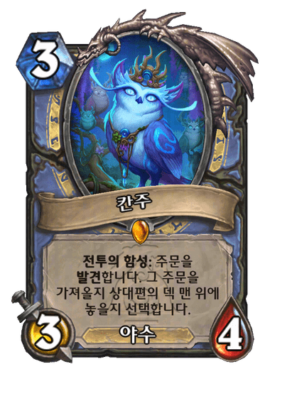 전투의 함성: 주문을 발견합니다. 그 주문을 가져올지 상대편의 덱 맨 위에 놓을지 선택합니다.