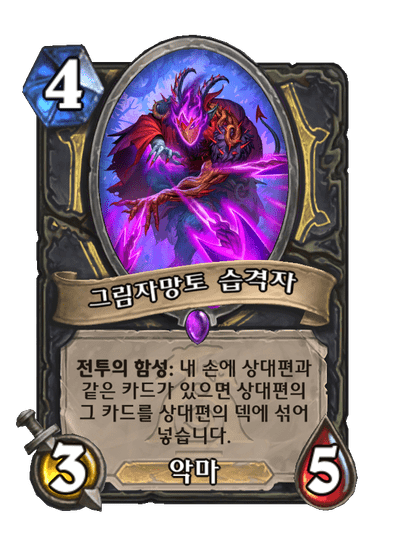전투의 함성: 내 손에 상대편과 같은 카드가 있으면 상대편의 그 카드를 상대편의 덱에 섞어 넣습니다.