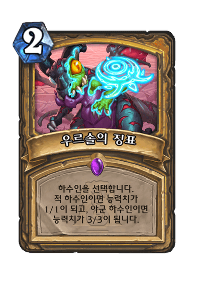 하수인을 선택합니다. 적 하수인이면 능력치가 1/1이 되고, 아군 하수인이면 능력치가 3/3이 됩니다.