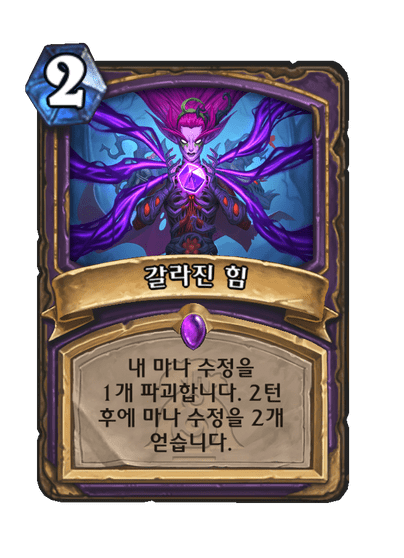 내 마나 수정을 1개 파괴합니다. 2턴 후에 마나 수정을 2개 얻습니다.