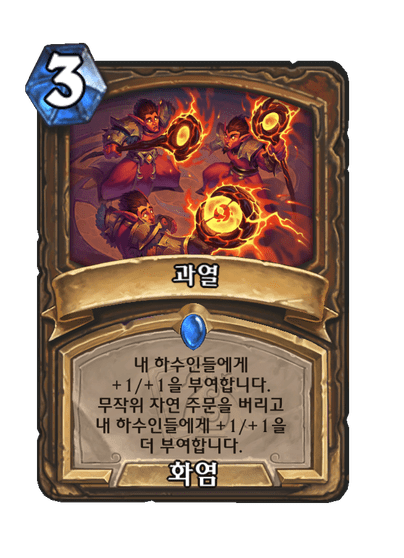 내 하수인들에게 +1/+1을 부여합니다. 무작위 자연 주문을 버리고 내 하수인들에게 +1/+1을 더 부여합니다.