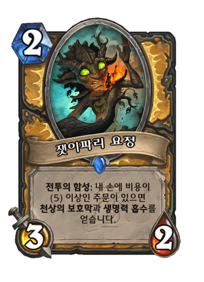 전투의 함성: 내 손에 비용이 (5) 이상인 주문이 있으면 천상의 보호막과 생명력 흡수를 얻습니다.