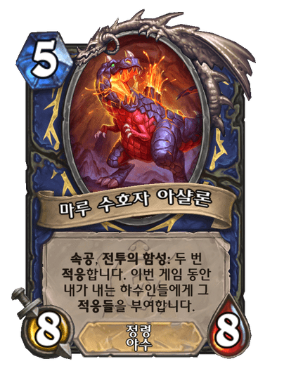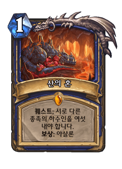 | 효과 | 퀘스트: 서로 다른 종족의 하수인을 여섯 내야 합니다. 보상: 아샬론 | ||