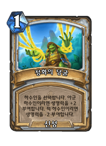 | 효과 | 죽음의 메아리: 비용이 1이고 하수인에게 생명력을 +2 또는 -2 부여하는 신성 주문을 얻습니다. | ||