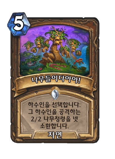 하수인을 선택합니다. 그 하수인을 공격하는 2/2 나무정령을 넷 소환합니다.
