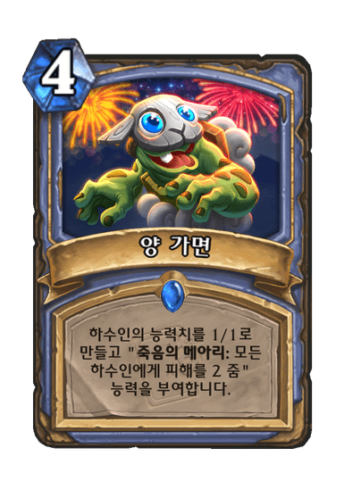 전투의 함성: 다른 직업의 무작위 가면을 얻습니다. 연계: 그 가면의 비용이 (2) 감소합니다.
