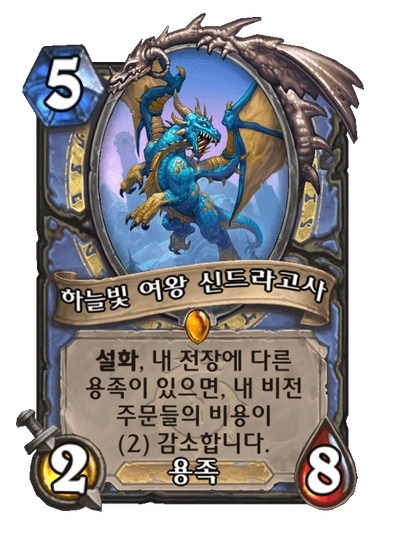 | 효과 | 설화, 내 전장에 다른 용족이 있으면, 내 비전 주문들의 비용이 (2) 감소합니다. | ||